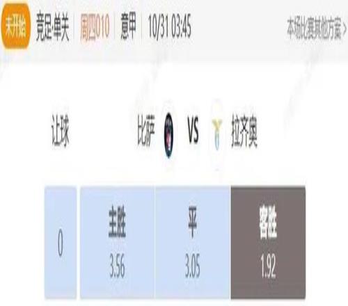 现在他们的目标是本赛季首次在意甲联赛中取得连胜,以两队近期状态来看,有一定难度,指数也在示好比萨,但倾向过于明显,或许是个引诱,看好拉齐奥赢球希望更大。
