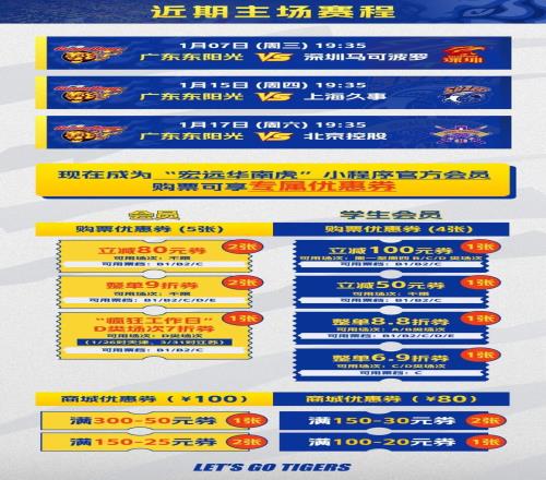 • 通过宏远华南虎小程序购买了本场比赛门票(即小程序票夹中含本场比赛门票)