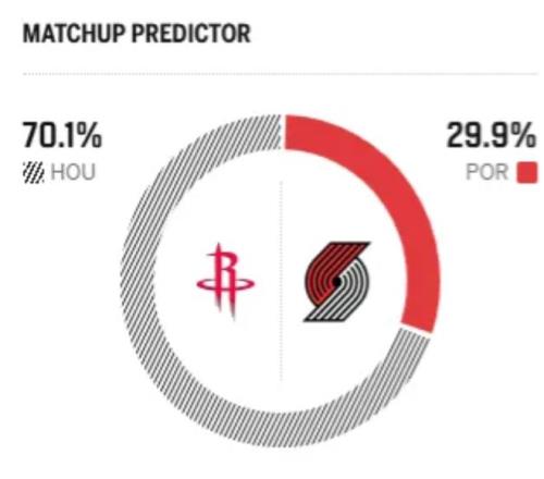 赛前,美媒ESPN对本场比赛进行了预测,火箭胜率高达70.1%,开拓者队胜率仅有29.9% ,差距非常明显。