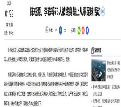 并且,发言人在会上通报,根据相关规定,对于李铁、陈戌源等七十余人给予终身禁止从事任何与足球有关活动的处罚。