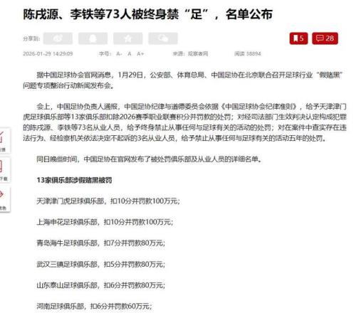 足坛反腐风暴刮骨疗毒,七十余人终身禁足的处罚,既是对 “假赌黑” 的零容忍,更是为中国足球扫清阴霾、重焕生机的决心。