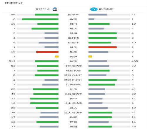 亚特兰大21那不勒斯,萨马尔季奇制胜,帕萨利奇建功