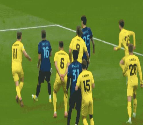 第32分钟,国米在前场连续一脚传球,泽林斯基的过人和射门都相当精彩,可惜皮球稍稍偏出。