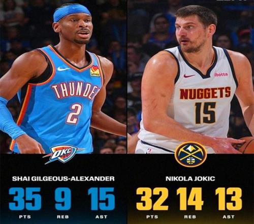 但这并没有影响这场强强对话的含金量,两队仍旧是杀得有来有回,比赛悬念一直保持到比赛最后一刻,最终雷霆凭借亚历山大的3分绝杀以129-126击败掘金。