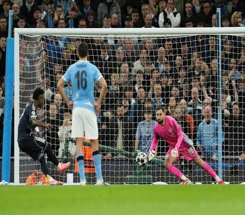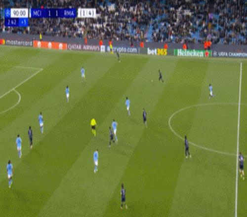 比赛最后时刻,巴尔韦德传球,维尼修斯两连击破门,但是越位在先。——不过很快的,维尼修斯又进球,这回是楚阿梅尼的助攻。镜头给到瓜迪奥拉,一脸落寞。